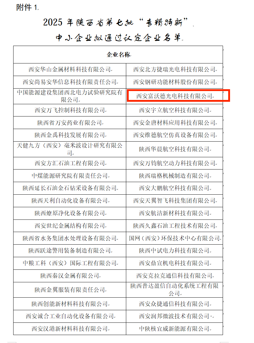 近日,经陕西省工业和信息化厅层层评审、严格公示,西安富沃德光电科技有限公司凭借在人工影响天气无人机领域的核心技术实力、细分市场优势及高质量发展成果,成功荣获陕西省“专精特新”中小企业荣誉称号。这一殊荣既是省级层面对企业专业化发展、创新能力的高度认可,更是企业深耕细分赛道、筑牢行业头部地位的有力印证,为企业拓展市场、深化研发再添重磅“背书”。